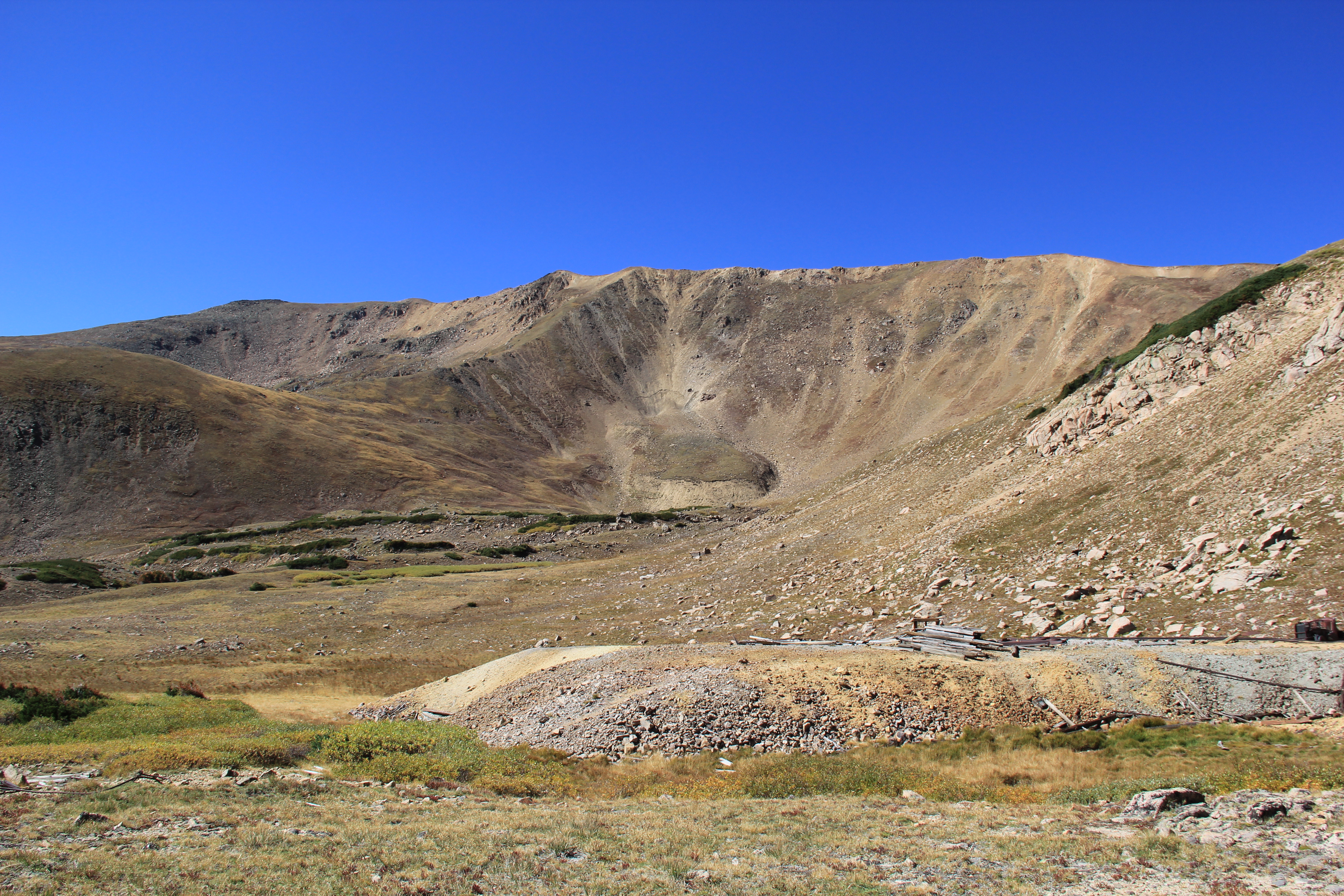 The trail did increase in its incline from this point, but really the altitude is the bigger challenge. It is not too long from here to reach the bowl and old mine that is our goal.   Coming out from the trees was really beautiful, suddenly we were there.  The trail wound around the shelf to the Jean Mine, which has a lot remains of when the mine was active: