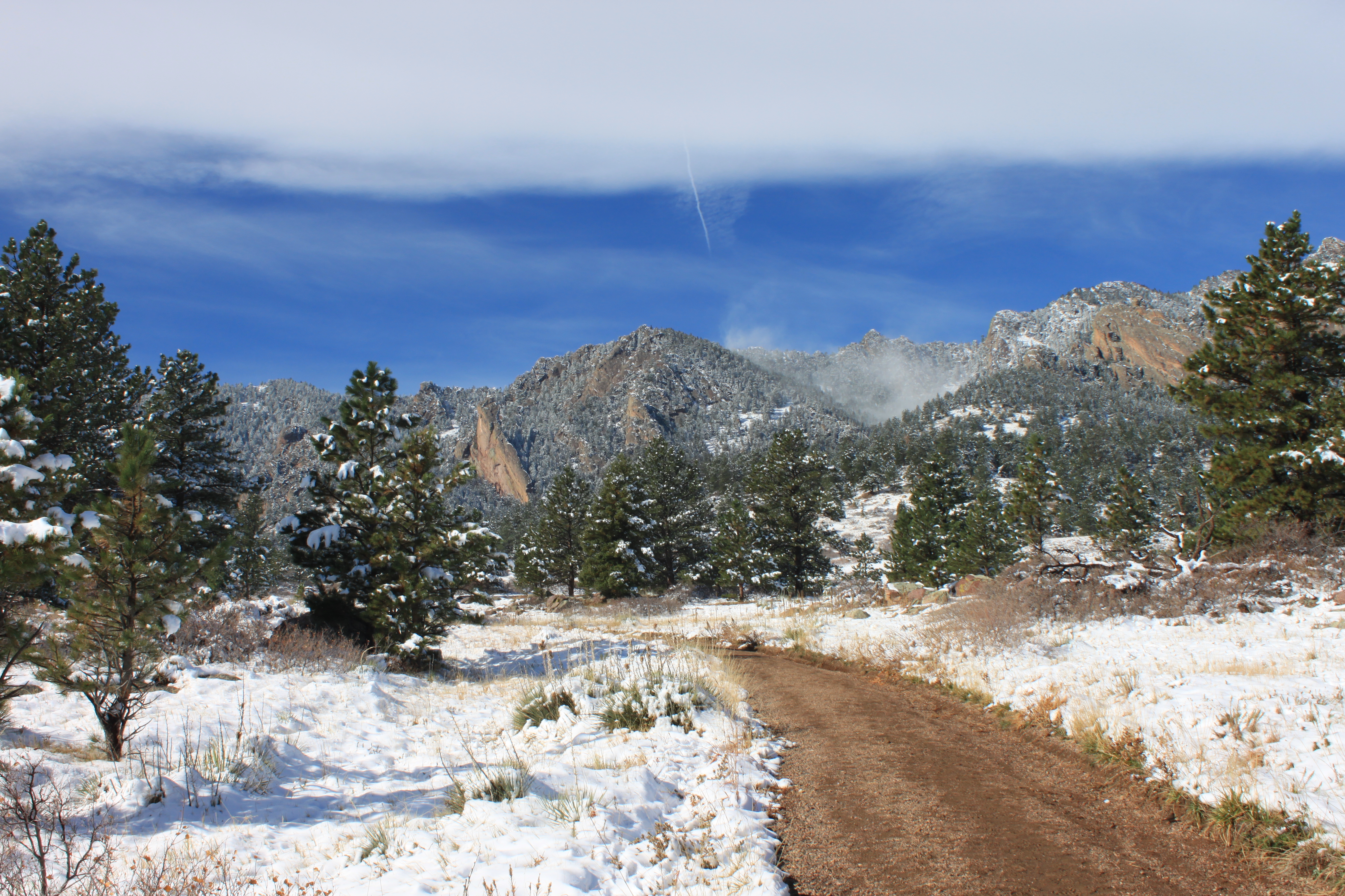 The week brought a nice snow storm for the mountains and couple of inches for us in the front range . Today was going to be a beautiful beginning to the warm up for next week and it didn’t disappoint. The hard part about not growing up here is my Illinois roots kick in, snow on the ground with a 30 degree start means COLD! That is not how it works here, with the sun out 30 is really a warm 50 to my bones but my brain still says “bundle up baby”!!!! So over-bundled we started off, I am pretty sure those who passed us kinda laughed out loud while trying to be nice….