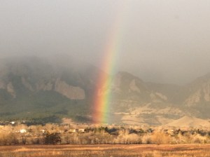 We left at 6AM hoping we would get enough time to finish the hike before the storm set in and as we got to the top of the hill on 36 where you can see Boulder down in the valley before you, we saw this: