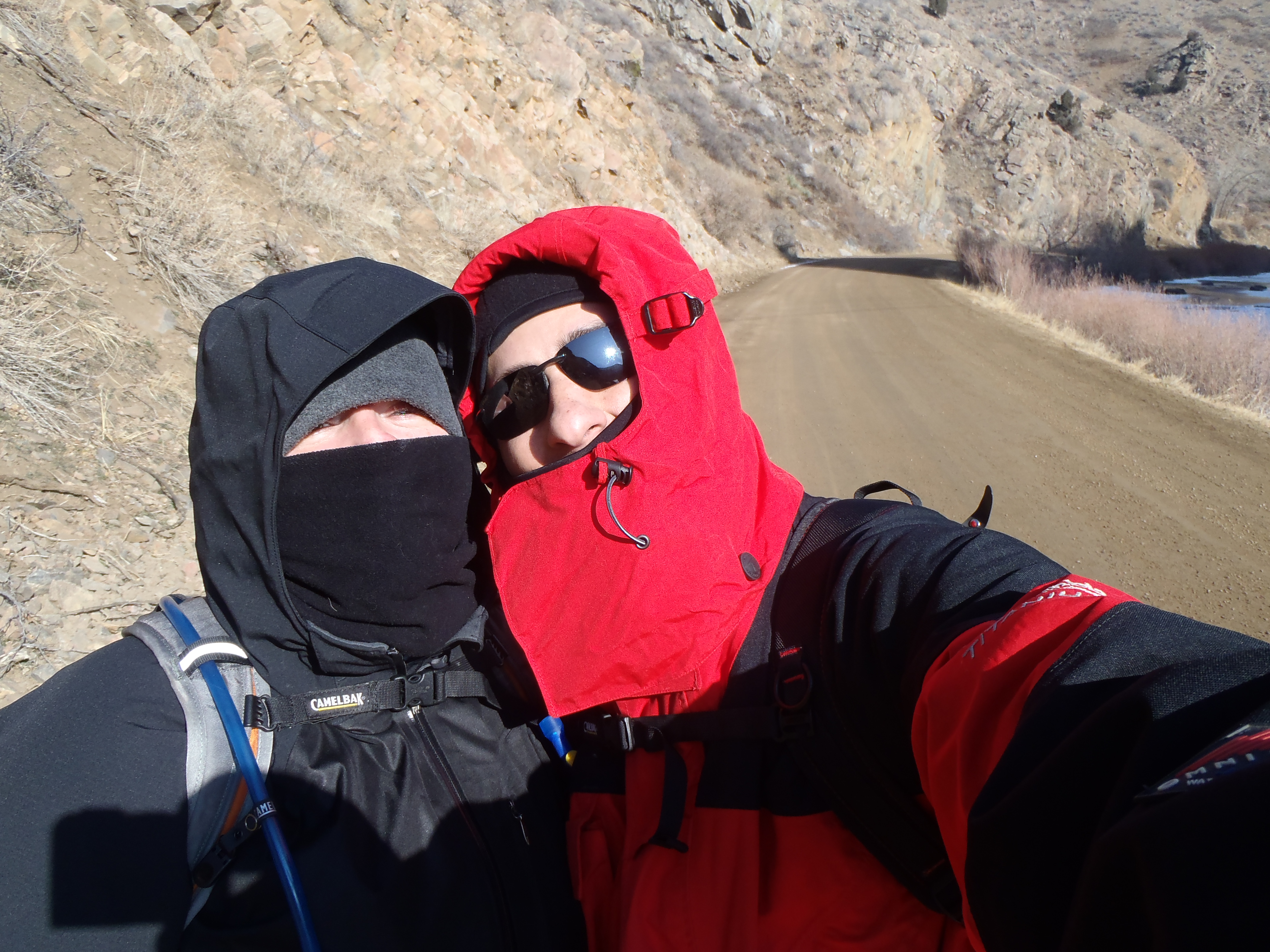 After my crud finally let up last Sunday-ish, I was able to start working out again.  It was a slow week and I only got in about half of my usual workouts or working out time.  I knew my lungs and body weren’t up to too much so I decided an old standby was in order.  Waterton Canyon is very easy, when we started getting into shape last March this would often be our second hike in a weekend and then it would be our easy hike.  There is almost no elevation gain but you can make it LLLOOOONNNGGG.  Plus it is close to Denver and one of Aaron’s favorite features is that we can walk side by side ( he still likes to hold my hand occasionally, I am such a lucky girl!).  The trail itself is the width of an almost 2 lane dirt road and every time I have walked, at least 2 cars have driven up it.  Mostly the Denver Water treatment people as it runs along the Platte River and eventually to one of the reservoirs that is part of the Denver water system.   While it is insanely crowded almost every time I have used it on a weekend day, today was a bitterly cold day which is actually unusual in the Denver area, so we were almost completely alone the whole hike.  My first January/February here it actually averaged around 60 -70 degrees a day, sure it would go down to 20-ish at night but who cares, it was 70 in January during the day!  Today though it started out at a bitter 1 degree and a wind chill of -13….when we started it had warmed up to 11 with a wind chill of -1 and when we finished 3 hours later it had only gone up just 2 degrees.  Needless to say, we bundled up the most we have to date and did not peel off one layer for the duration of the hike.