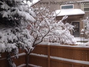We had big plans last night for our hike today not that it was new one but that we were going to hammer out a lot of miles regardless of the “storm ” they were predicting…. For the past 4 weekends the “storms” that have hit on the weekend have been underwhelming or non-existent so we were pretty confident this weekend’s storm would be the same. Not only was it not the same, it started sooner than they predicted and the scant 1 inch we might get by 6AM turned out to be a robust 4 inches at 5AM. Oh and the Barometric pressure change was killer on Aaron’s blood sugar so we had little to no sleep all night dealing with the lows it brought along with it. When the alarm went off at 5AM and I looked outside I crawled right into bed and sweet talked Aaron into not hiking, not that it took much. When I got up at 8, I was surprised to hear that we had already received almost 8 inches of snow and are expecting still more before the storm is done, not to mention the wind. Oh and it may start back up again tomorrow, if we weren’t so desperate for the moisture I would be more annoyed.