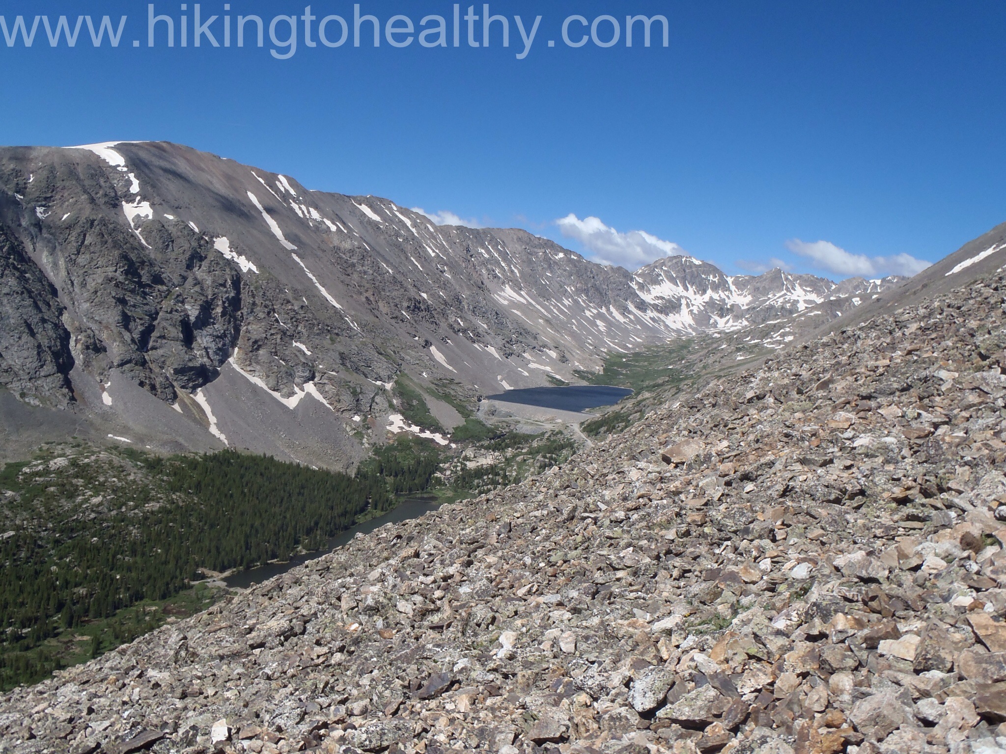 Directions: From I-70, take Exit #203 for Breckenridge – Highway 9 and travel south through the towns of Breckenridge and Blue River. Travel 18.3 miles from Exit #203 to State Road 850( Blue Lakes Road) and turn right (west). Make an immediate right on McCullough Gulch Road (State Road 851 north) and travel .3 miles up the maintained dirt road to the trailhead. Spaces are limited, but roadside parking is permitted.  There is also a parking lot immediately after turning onto Blue Lakes Road with the port-o-potty but we opted to go to the Official trail head parking.