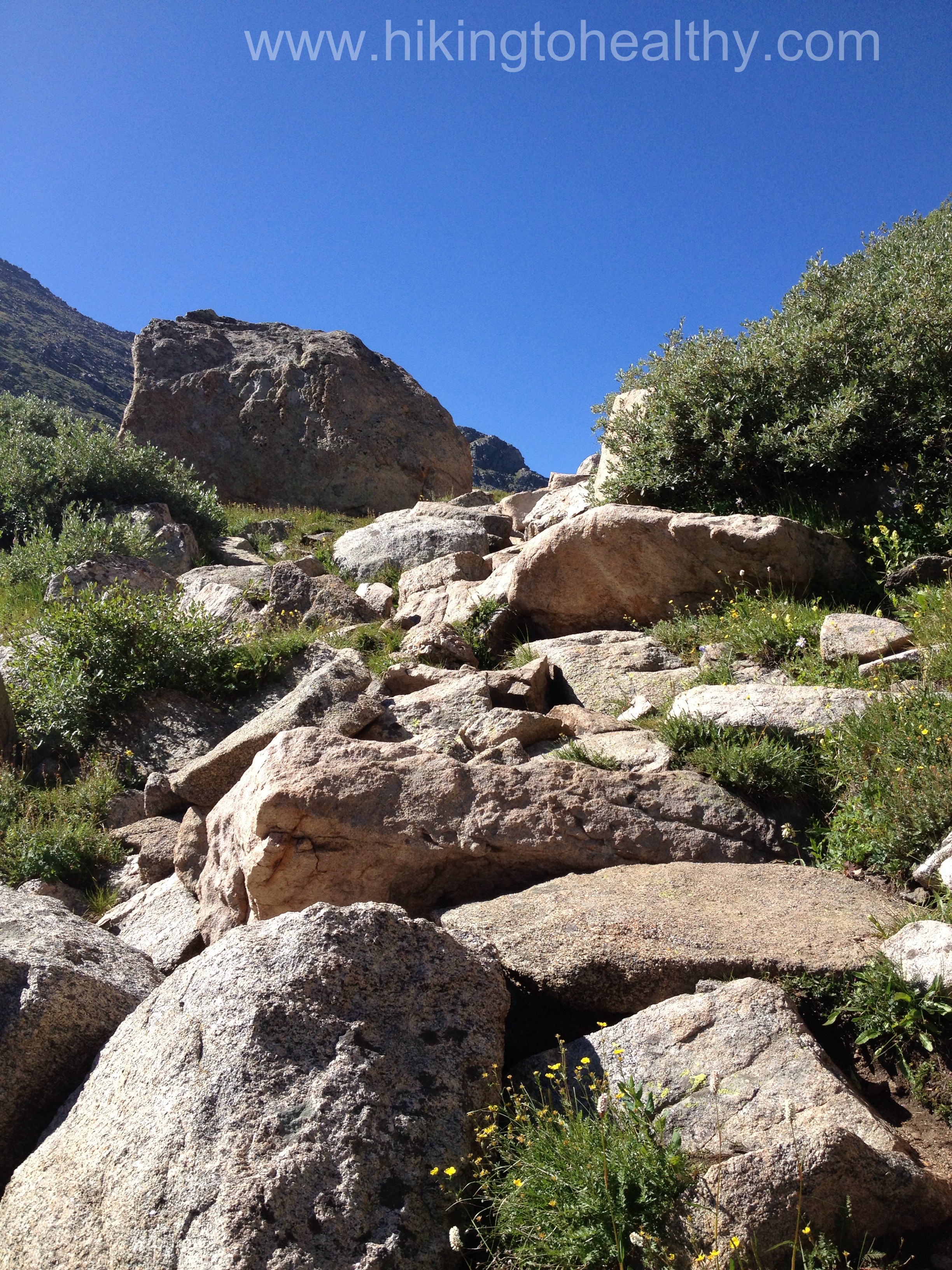 I have been wanting to try this hike since April.  I had targeted as one of our conditioning hikes to get ready for our first 14er, but then we got those crazy snow storms throughout April and May which meant the trail was under many feet of snow when I originally wanted to attempt it.  When it was finally possible to hike it, it was mountain goat and sheep mating season and Park Rangers ask that you do not hike here in order to let the goats and sheep do their thing.   Which of course I respected since the poor animals deserve some peace while they mate.  We weren’t expecting to do these re-acclimating hikes, but since I was forced to get used to it all again I figured now was the perfect time to check them out.