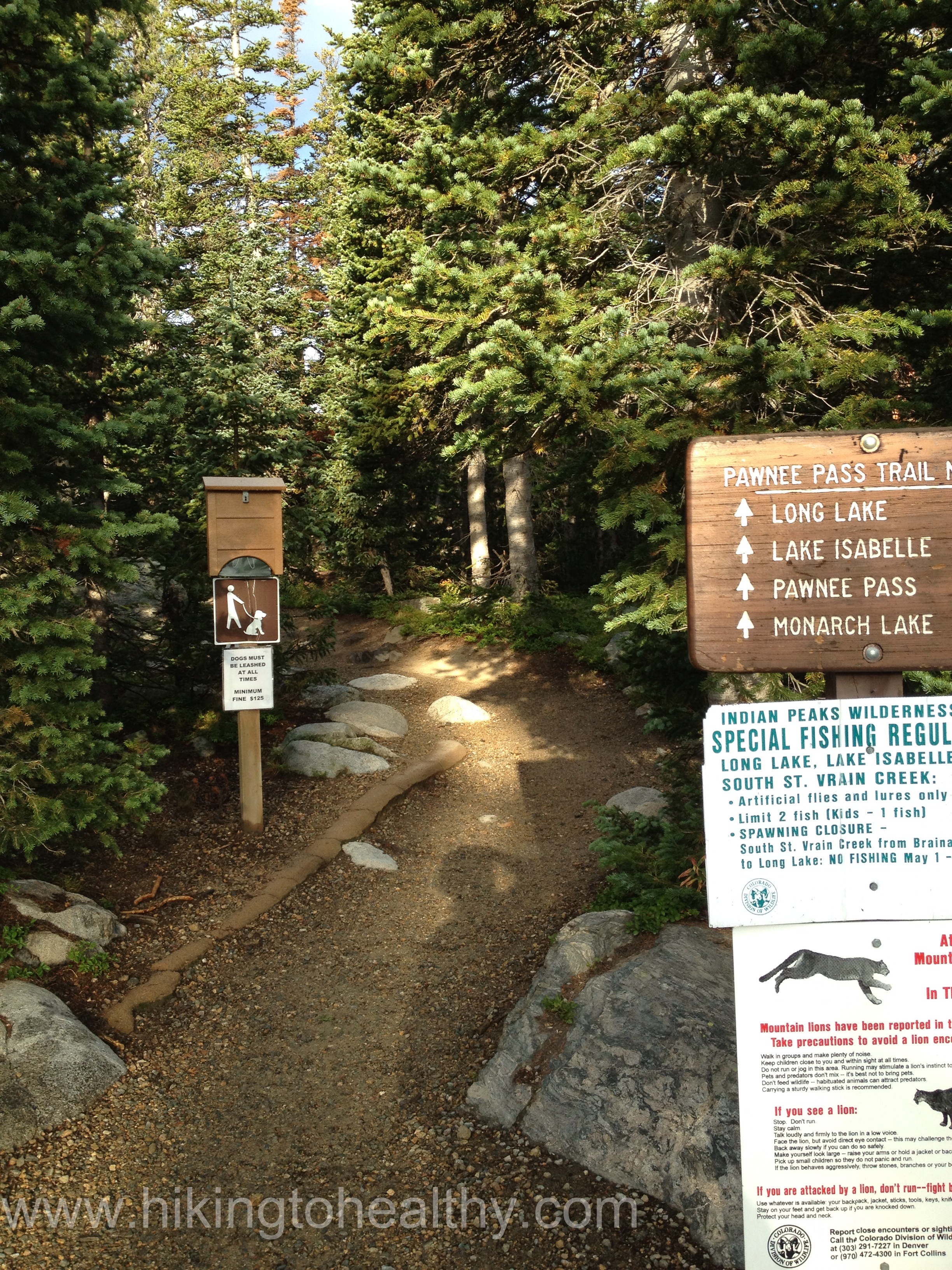 Directions:  Take 36 through Boulder and from Broadway( north-end of Boulder) continue 4.8 miles to Left Hand Canyon Rd( 94) turn Left.  At 5.2 miles you will need to turn left to stay on Left Hand Canyon Rd.  Stay on this for 11.6 miles through the town of Ward to the Peak to Peak Highway ( Colorado 72).  Turn right onto 72 and then Immediately left into the Brainard Lake Recreation Area.