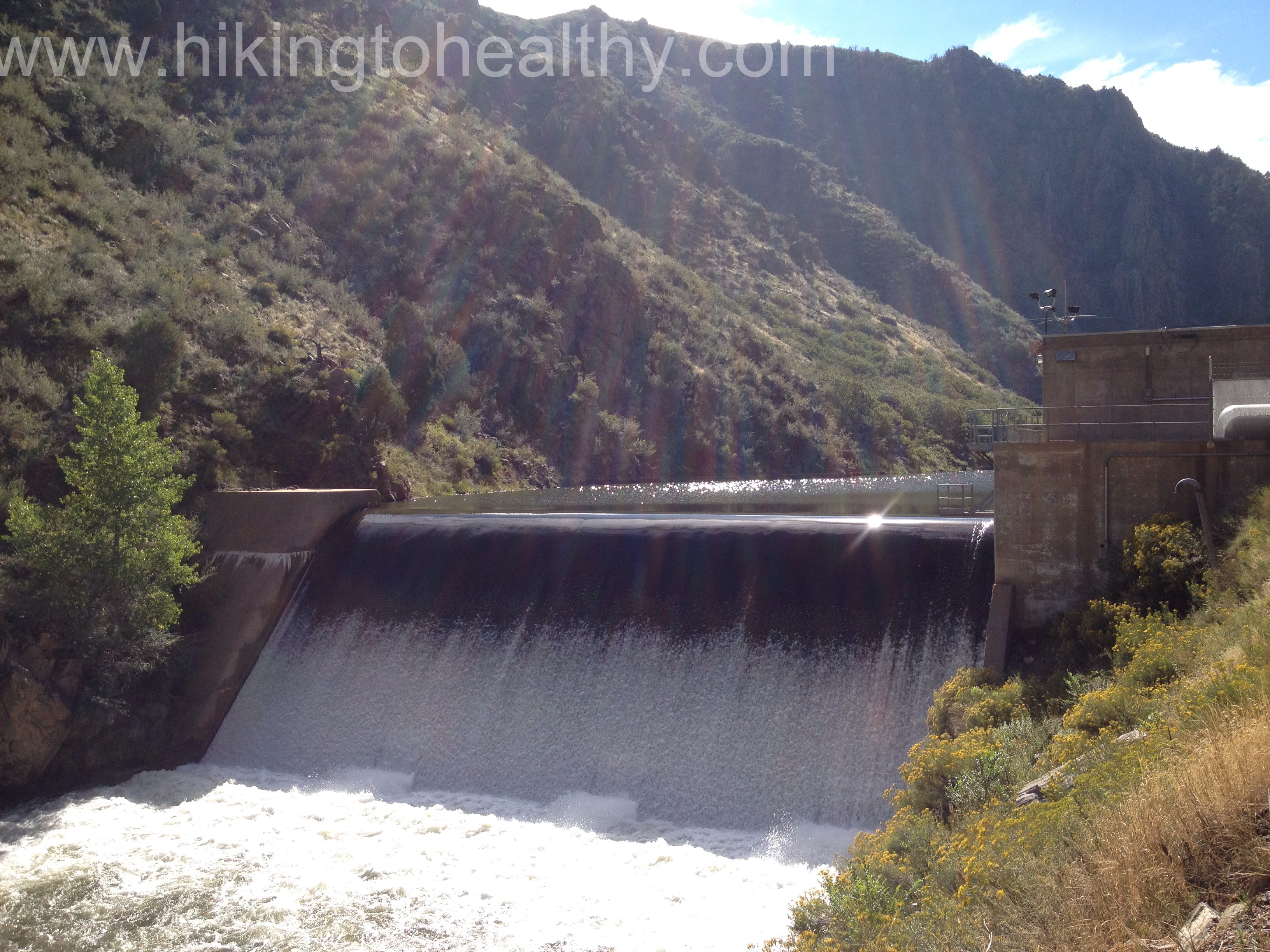 This is when I learned that everything I knew about this hike was a little wrong…. I guess I thought the trail actually went to the springs and that it ended in this picturesque setting that was super beautiful with the Colorado trail a beacon of opportunity  taunting you near the springs.  What we found was that the Big Dam everyone asks if you made it to,  is in fact at the end and is crazy big….like Hoover Dam big!  Then it goes into some residential housing and up a little ways is the Colorado trial.