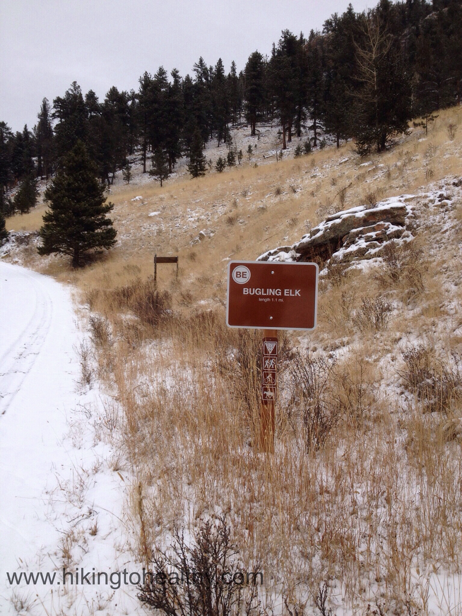 Once down by the pond, finding Bugling Elk trail to head back was very easy and the trail itself is some type of access road very wide and easy to hike: