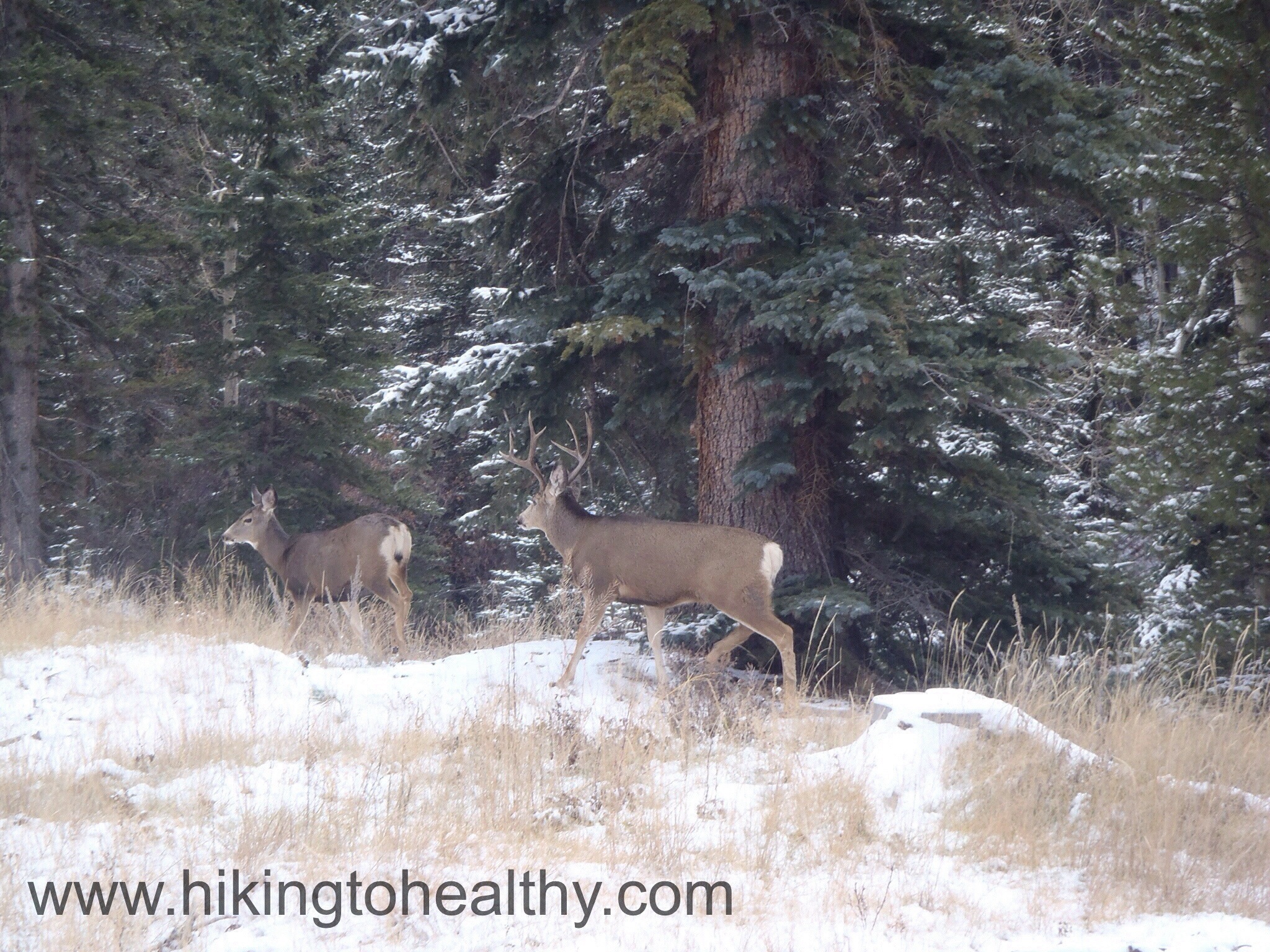 Knowing that we were just 3.3 miles from the end had us in great spirits, discovering this gem for ourselves…. well we were pretty chatty about it all.  So chatty in fact we almost missed the herd of deer on our left.  Then while taking too many pictures of them cavorting, we found out almost a minute too late that the main buck was on our right rounding up the rest of his herd and he was CLOSE.   Honestly I have never been that close to a buck, I would say he was just 5-6 feet away from us and totally unconcerned with what we were doing as he got his last doe back in line.