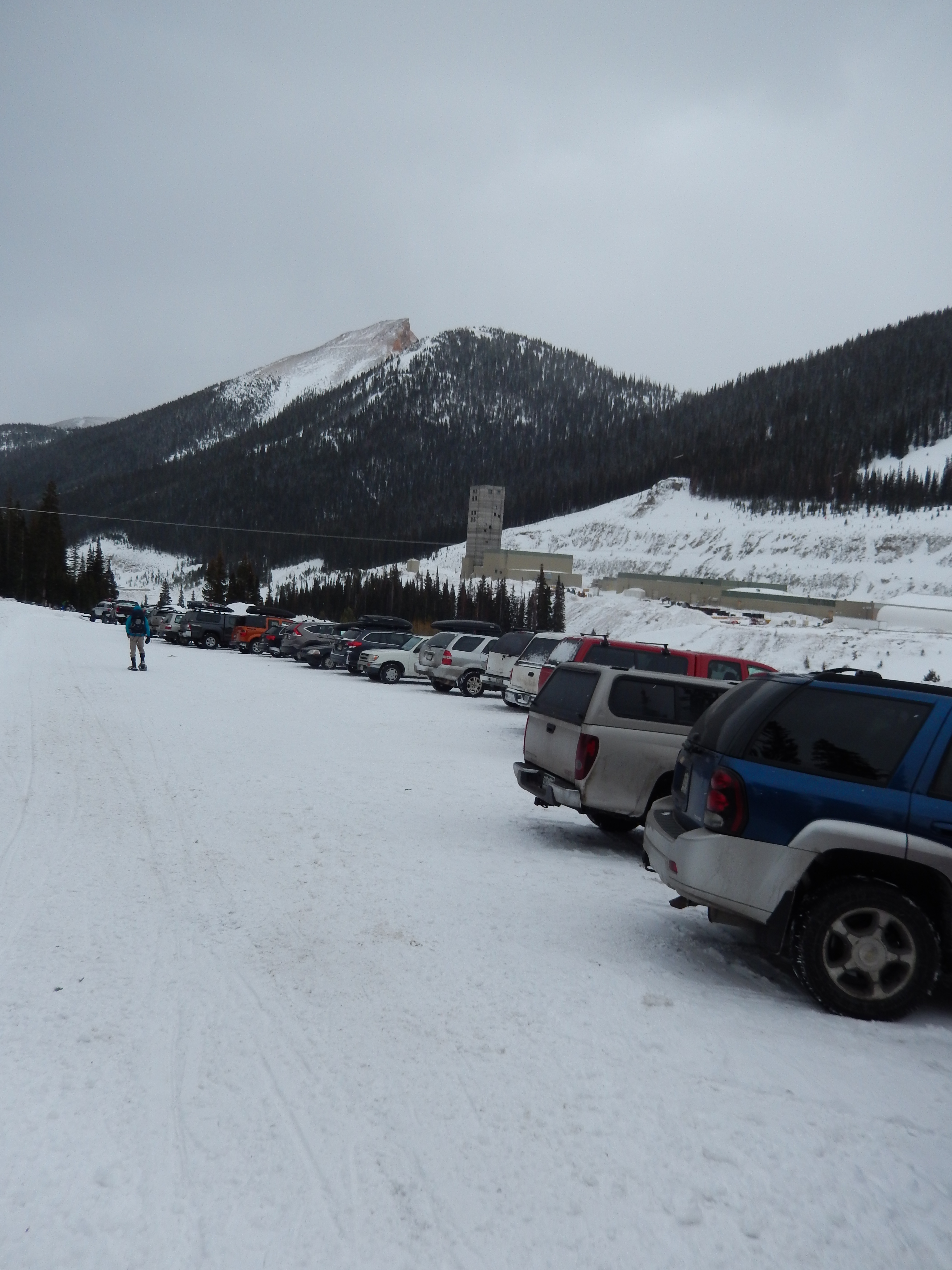 When we pulled up to the parking lot, we were impressed with how many cars were already there and more were pulling in constantly.  Fortunately it was not all for Butler Gulch, but also for Jones Pass which is open to motorized vehicles(Butler Gulch is not), lots of snow mobiles were over that way.