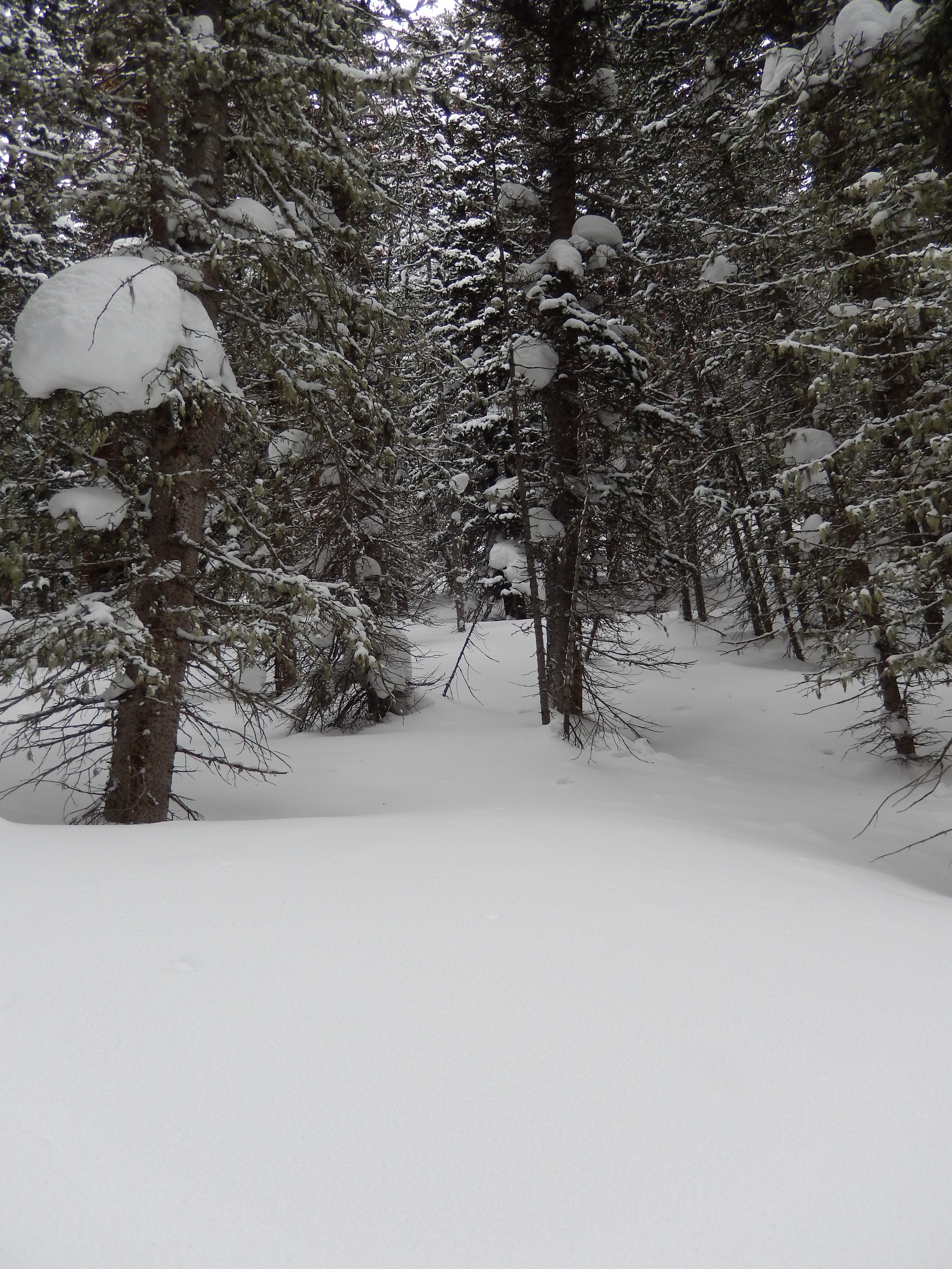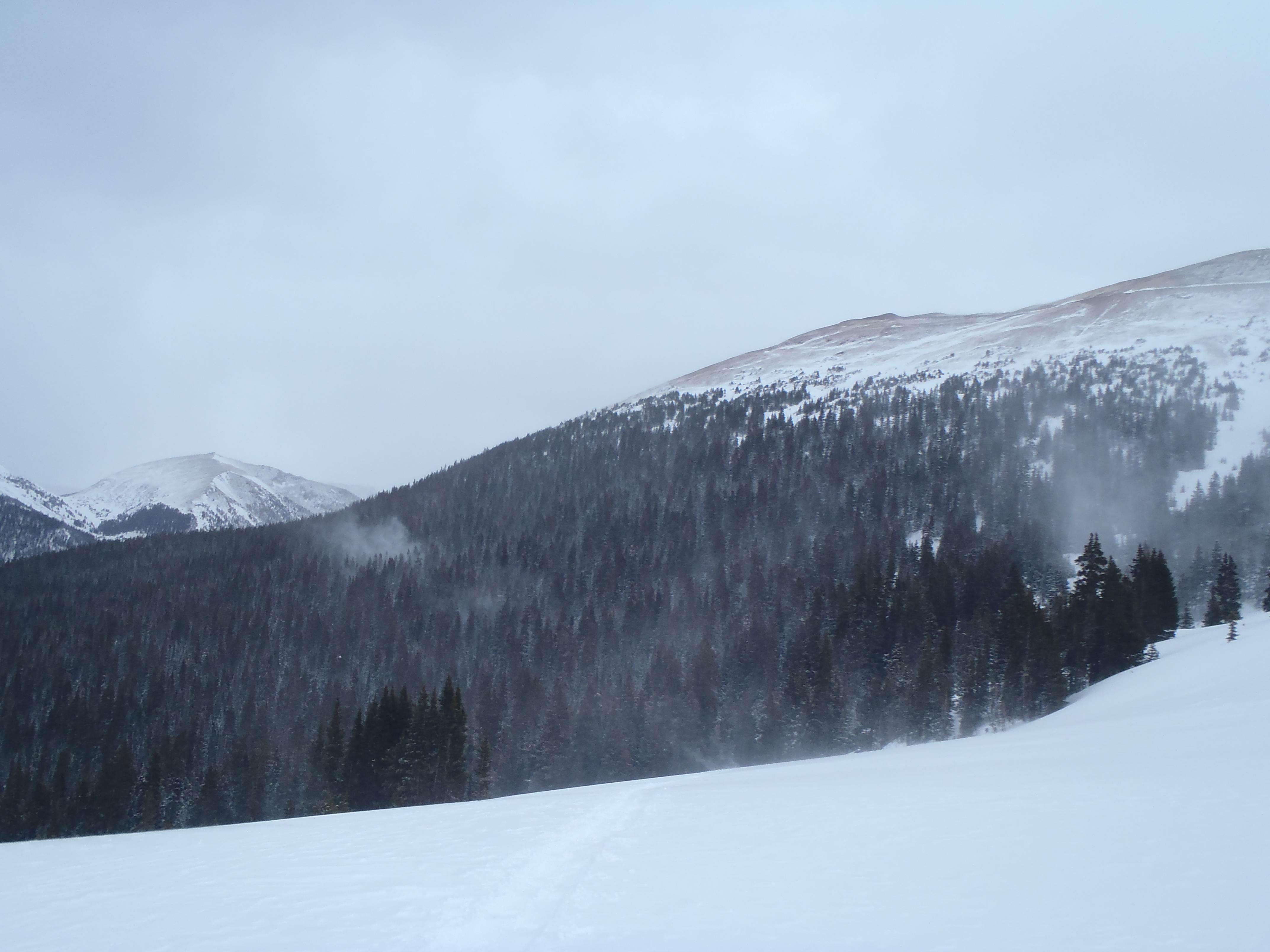 We moved out at a nice pace and then as we climbed in elevation we definitely slowed down, I guess it had been longer than I thought since we were last at 10,000+feet.  Despite the struggle with the altitude I was so happy to be out there.  The weather was pretty good, just a little snow falling and occasionally we would hear big wind up above.