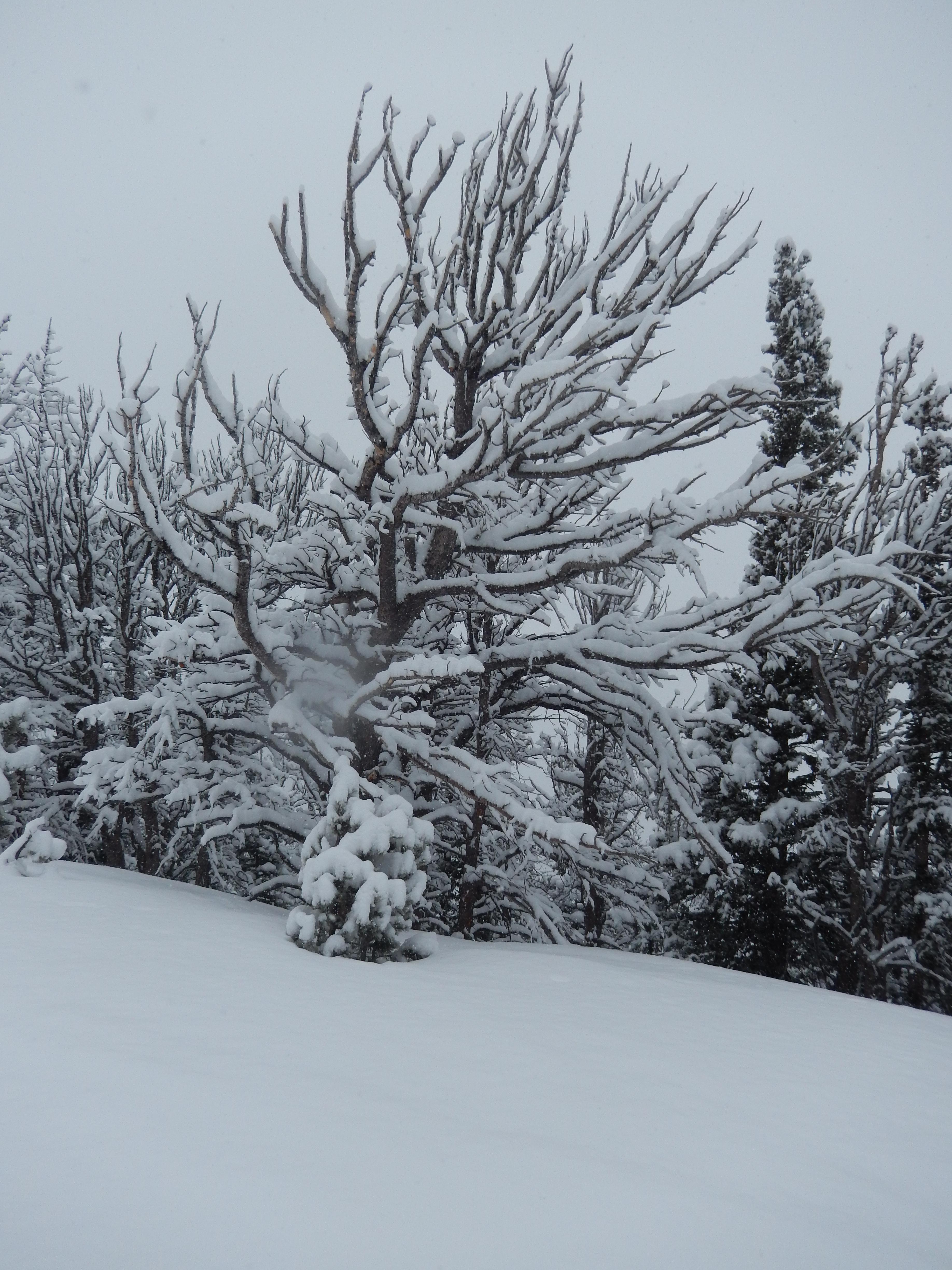 I am always amazed when I do a trail for function then get transfixed by the unexpected beauty.  The snow made any views of the surrounding mountains impossible, occasionally we would catch hints of them but the snowy landscape itself was just lovely.  The bonus of this particular snow storm was that the wind wasn’t all that bad so no wicked wind to make us miserable.