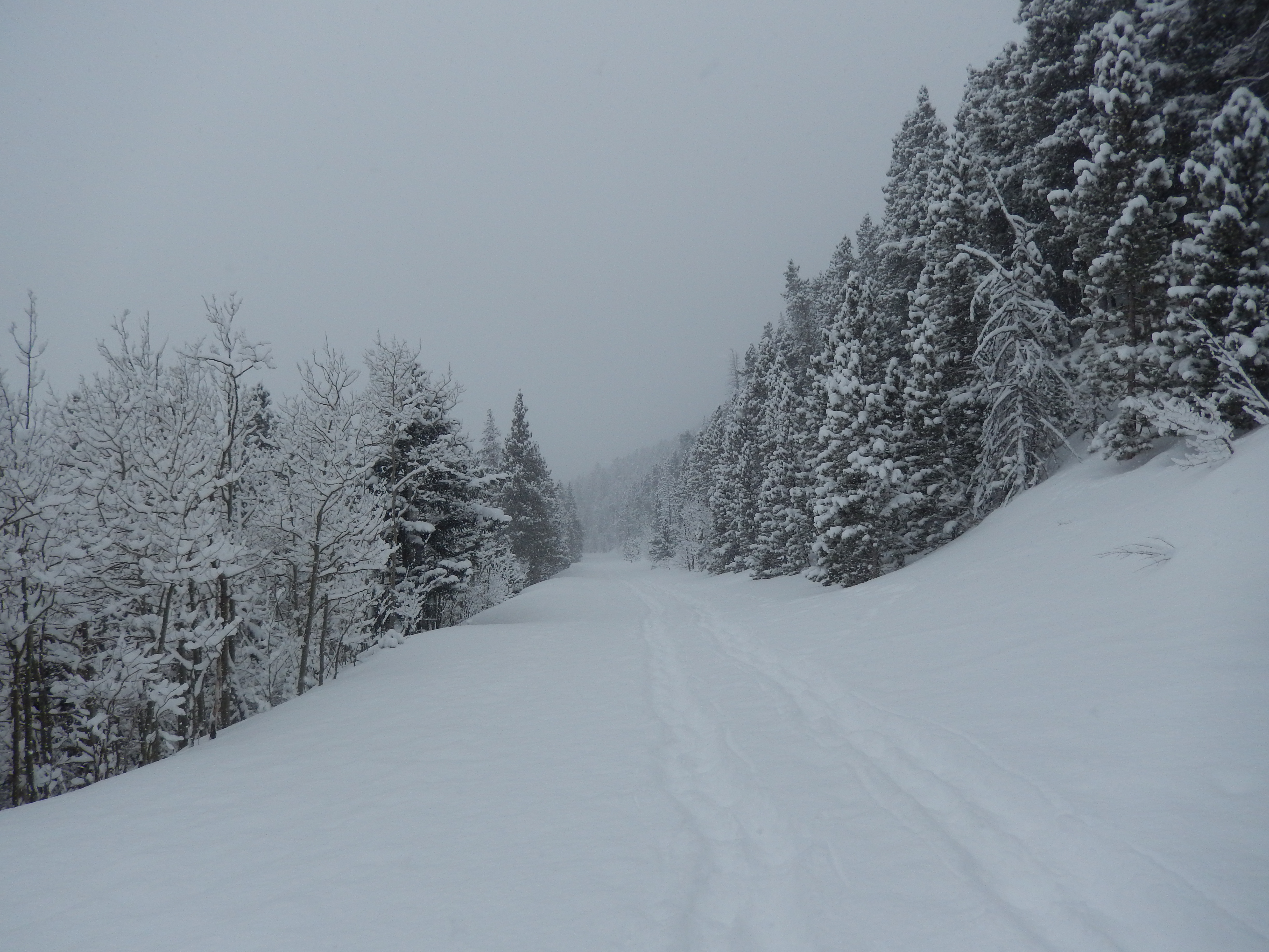 The roads were not great and the snow was pretty thick at times, so it was no surprise that when we pulled into the area cleared for parking at the road closure we were the only ones there.