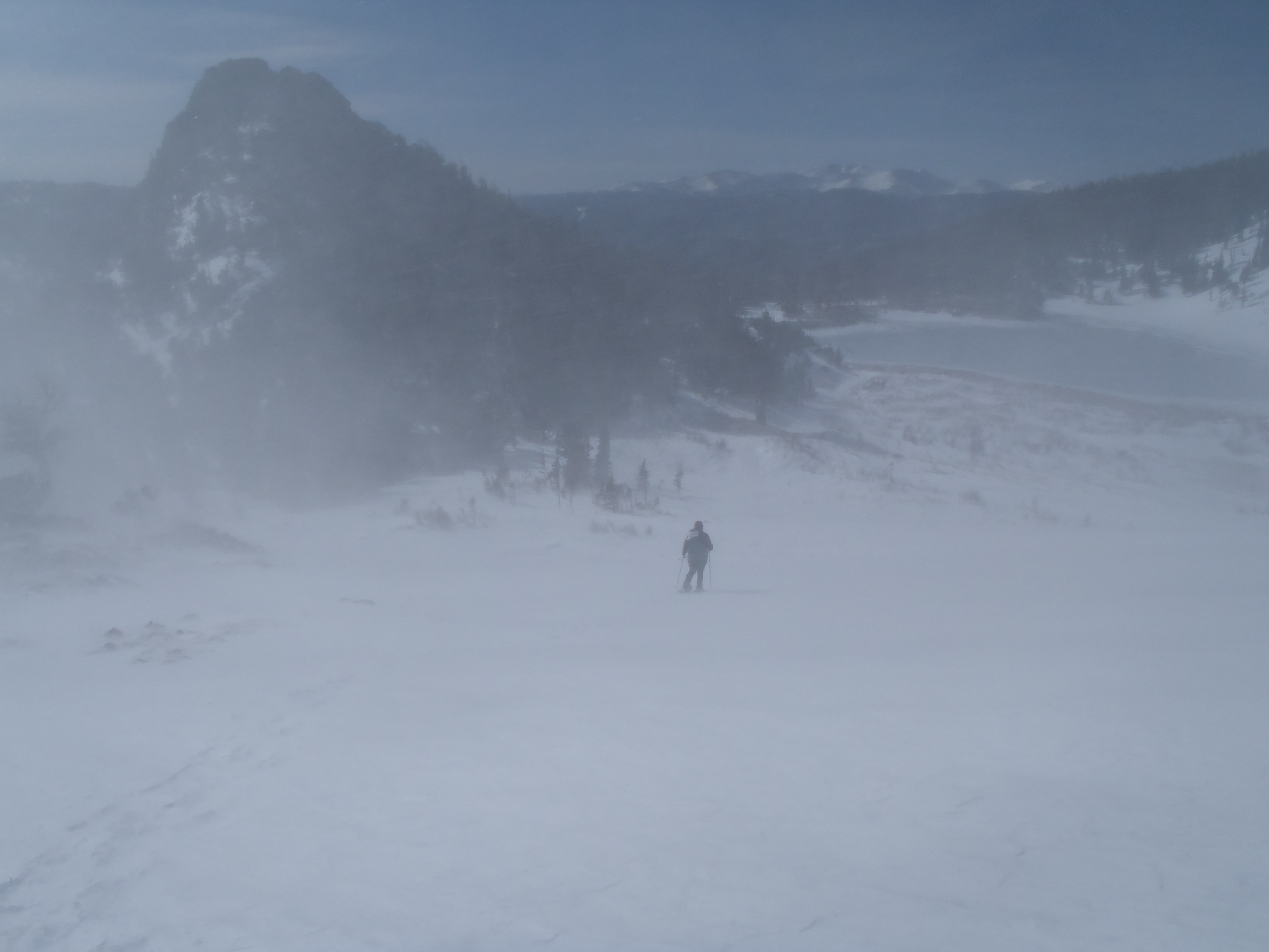 We headed up the glacier not once, not twice but 3 times. Each time we would get in the middle of the winds and try to go a little further and then just get freaked out and turn around. Again if I had more Avalanche training I might have approached it differently but we could not see anything in the windy snow and we could not even look at the mountain ridges to see what the cornices looked like or see what was coming at us from in front or even where we had just come from.