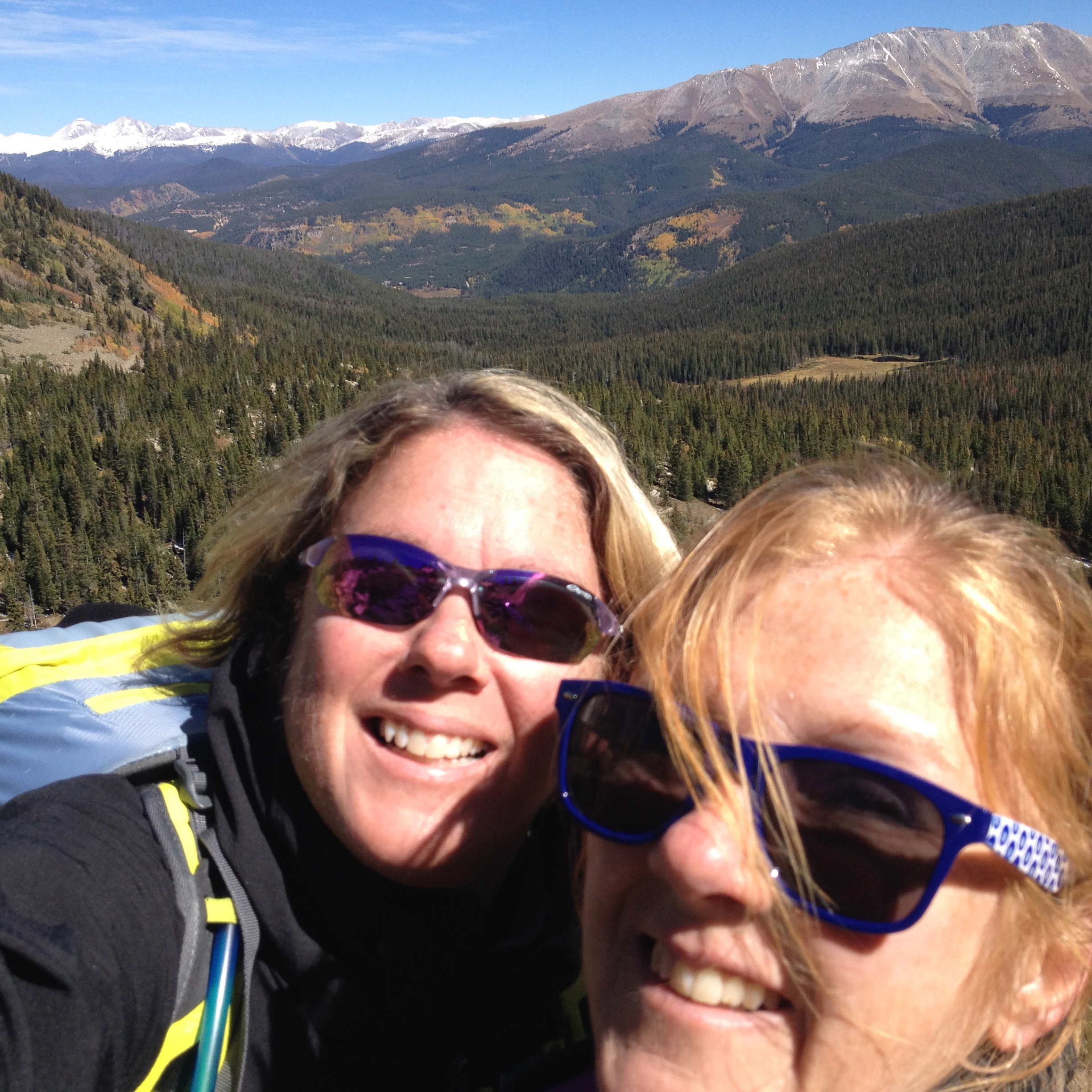 Us at the scramble on the way down…Mary is MUCH more relaxed here.Views at the scramble….love how snow is like the perfect frosting.The 2 perfect peaks are Grays and Torreys